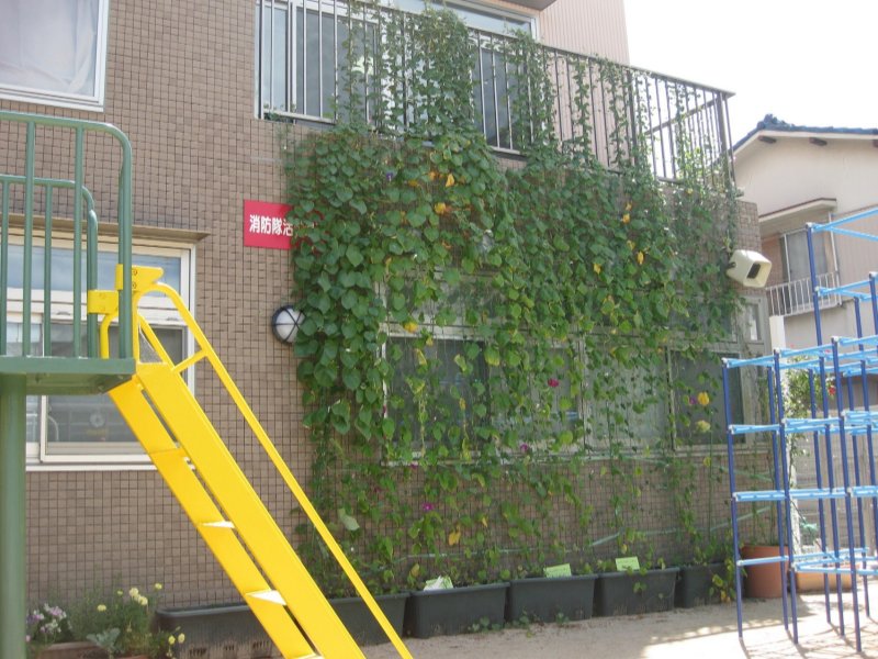 保育施設では、子どもたちにエコ育を実施しており、環境の大切さを保育の中で伝えるとともに、エコキャップ運動やグリーンカーテンの栽培等の活動を実施しています。