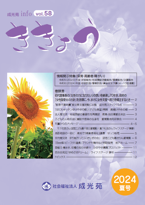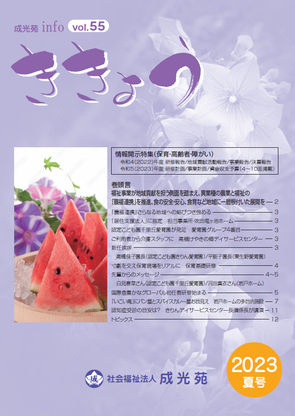 社会福祉法人成光苑では、広報誌「ききょう」を年3回発行しております。
